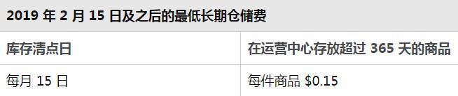 最低标准长期仓储费:在运营中心存放超过365天的商品的最低长期性仓储费从每件商品$0.50降为每件商品$0.15。
