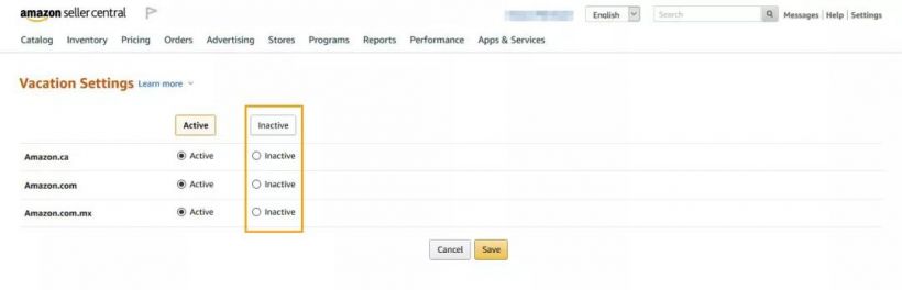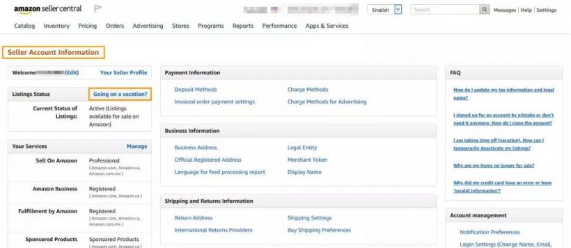 如果货源未准备好或者物流商未开始提供服务导致全店铺基本无法发货,卖家可以把账户状态改成“休假模式”暂不可售。(亚马逊卖家平台>设置>卖家账户信息>假期设置) |