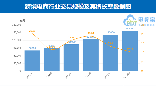 数据显示,2022上半年,我国跨境电商市场规模达7.1万亿元,预计2022年市场规模将达15.7万亿元,自2017年以来,我国跨境电商规模5年增长近10倍。