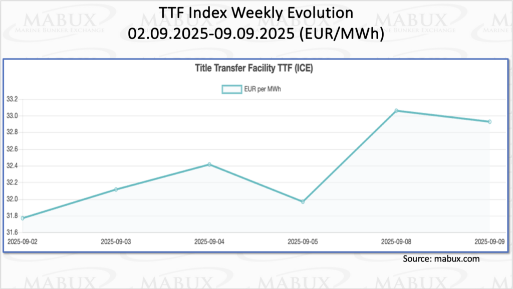 截至9月9日,欧洲区域天然气储存设施的库存量为79.63%,比前一周增加1.55%。目前的水平比年初高出8.30%,当时的库存量为71.33%,尽管注入的速度继续适度放缓。截至第37周末,欧洲天然气基准TTF小幅上涨1.159欧元/兆瓦时,从前一周的31.772欧元/兆瓦时上涨至32.931欧元/兆瓦时。