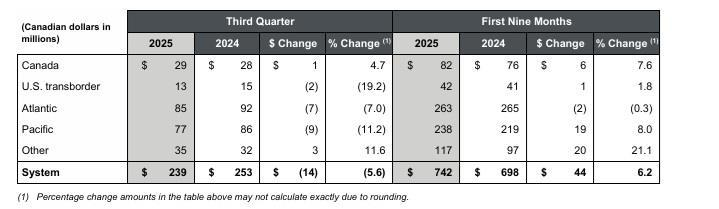 在截至9月30日的三个月里,该航空公司的货运收入总计2.39亿加元,低于2024年第三季度的2.53亿加元。