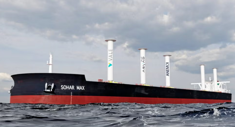 2023年,Vale在400,300载重吨的VLOC“Sohar Max”轮上安装了五只Anemoi旋翼帆。 图源:Vale